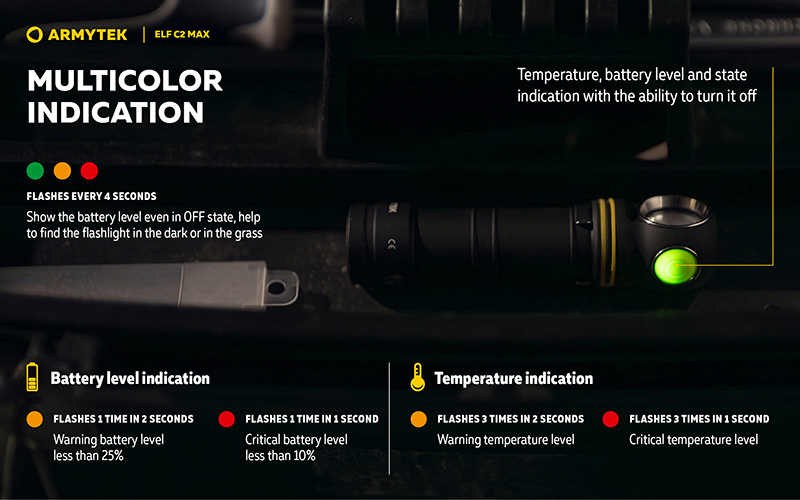 La lampe multi-fonction Armytek Elf C2 Max est une lampe 4 en 1 ultra polyvalente offrant 4500 lumens et un faisceau large exceptionnel de 150°. Produit phare de la série Elf, elle représente un nouveau niveau de luminosité avec un flux lumineux incroyable, ce qui la rend idéale pour le travail à courte distance, l'éclairage de grands espaces, les inspections, travaux industriels et activités outdoor.
