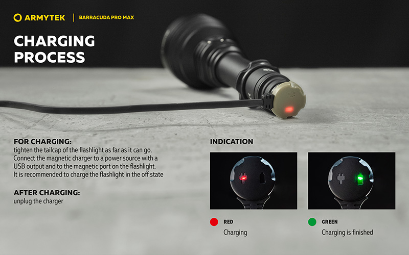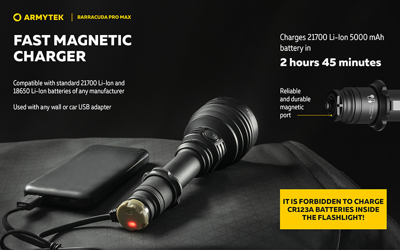 Rechargeable en seulement 2h45 via chargeur magnétique USB rapide, la Barracuda Pro Max est l'outil d'éclairage idéal pour les forces de l'ordre, militaires, agents de sécurité, chasseurs et les professionnels de la recherche et du sauvetage exigeant un équipement performant, fiable et polyvalent.