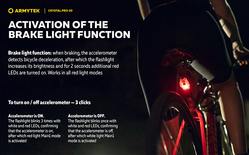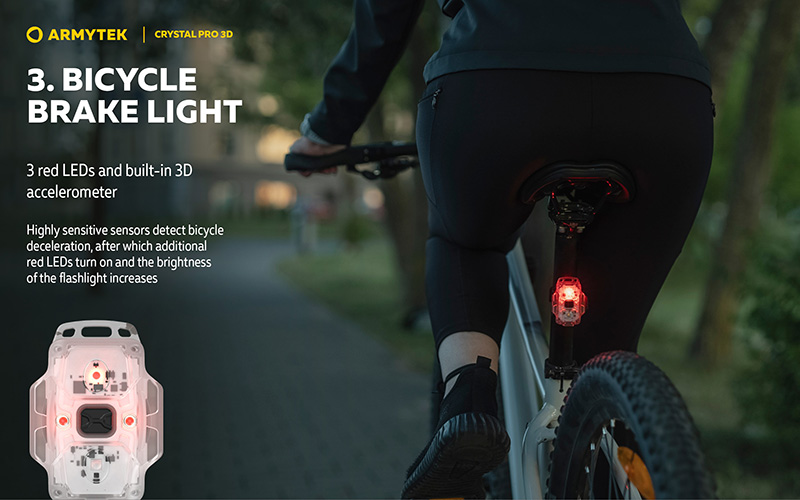 Fonction feu de freinage vélo : La Crystal Pro 3D intègre un accéléromètre 3D intelligent