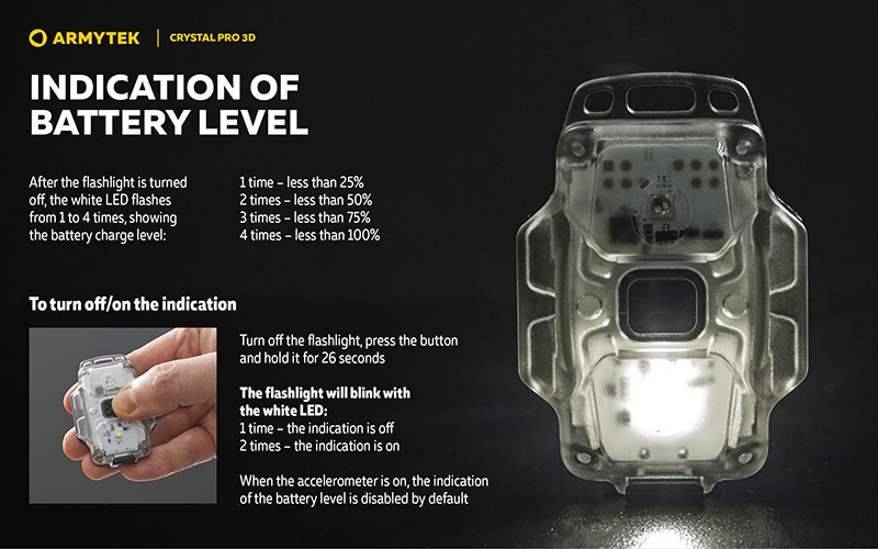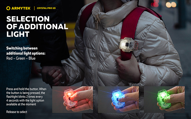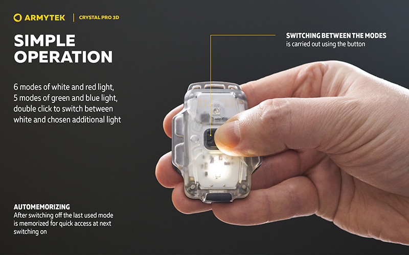 Lampe Frontale Armytek Crystal PRO 3D – 210 Lumens - Lumière Blanche/Rouge/Verte/Bleue - Fonction Feu de Freinage - Accéléromètre