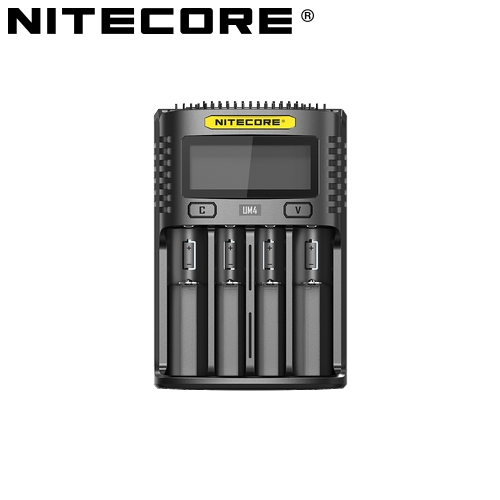Chargeur USB Nitecore UM4, il est capable de charger jusqu’à 1500mAh sur un slot et 3000 mA sur deux slots (1500 + 1500 mAh)