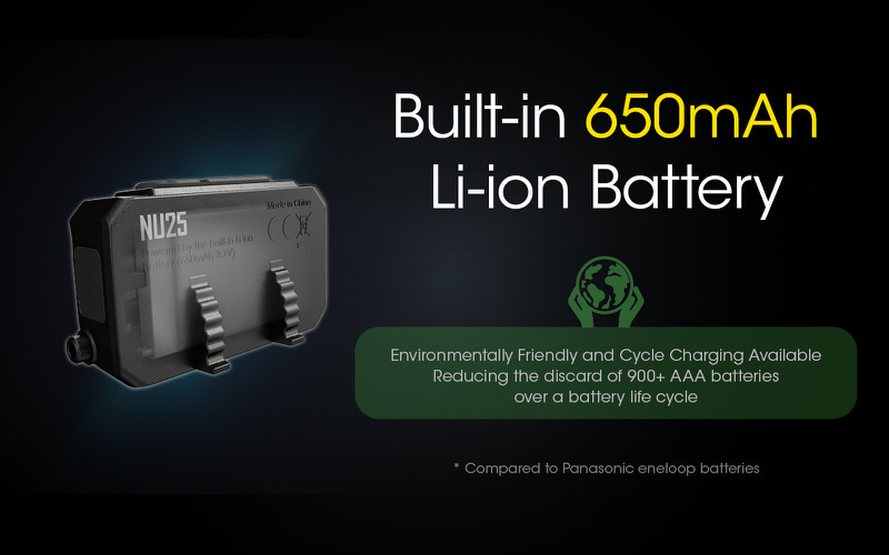 La lampe frontale Nitecore NU25 a été fabriquée en polycarbonate de haute qualité et montée sur un bandeau avec maintien en plastique permettant l’orientation de la lampe.