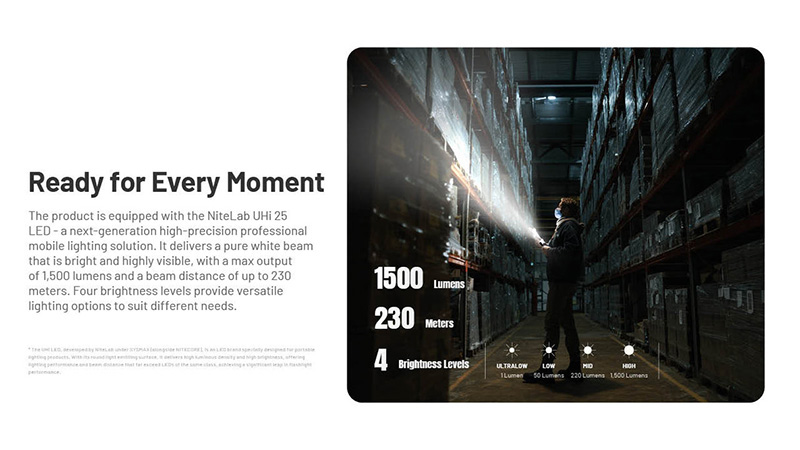 La lampe EDC Nitecore EDC17 est une lampe compacte multifonction 3 en 1 offrant 1500 lumens et une portée de 230 mètres. Équipée d'une LED UHi 25 de haute technologie, d'une lumière UV et d'un laser vert intégré, ce qui la rend idéale pour le transport quotidien, les activités outdoor, les inspections professionnelles et les présentations.
