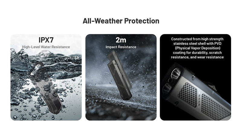 Conçue pour le port quotidien, l'EDC17 est fabriquée en acier inoxydable durable et bénéficie d'une protection IPX7 contre l'immersion temporaire ainsi qu'une résistance aux chocs jusqu'à 2 mètres. Son design plat ultra-compact de 123mm de longueur assure un transport discret en poche ou sur ceinture.
