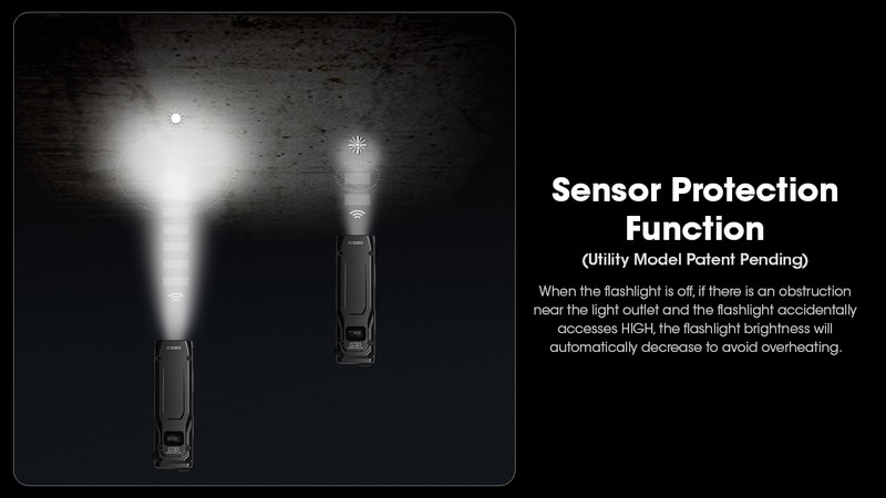Lorsque la lumière et l’écran sont allumés, exercez une demi-pression sur le bouton d’alimentation pour naviguer entre « ULTRALOW - LOW - MID - HIGH ». La lampe accédera directement au niveau de luminosité précédemment mémorisé lorsqu’elle sera réactivée.