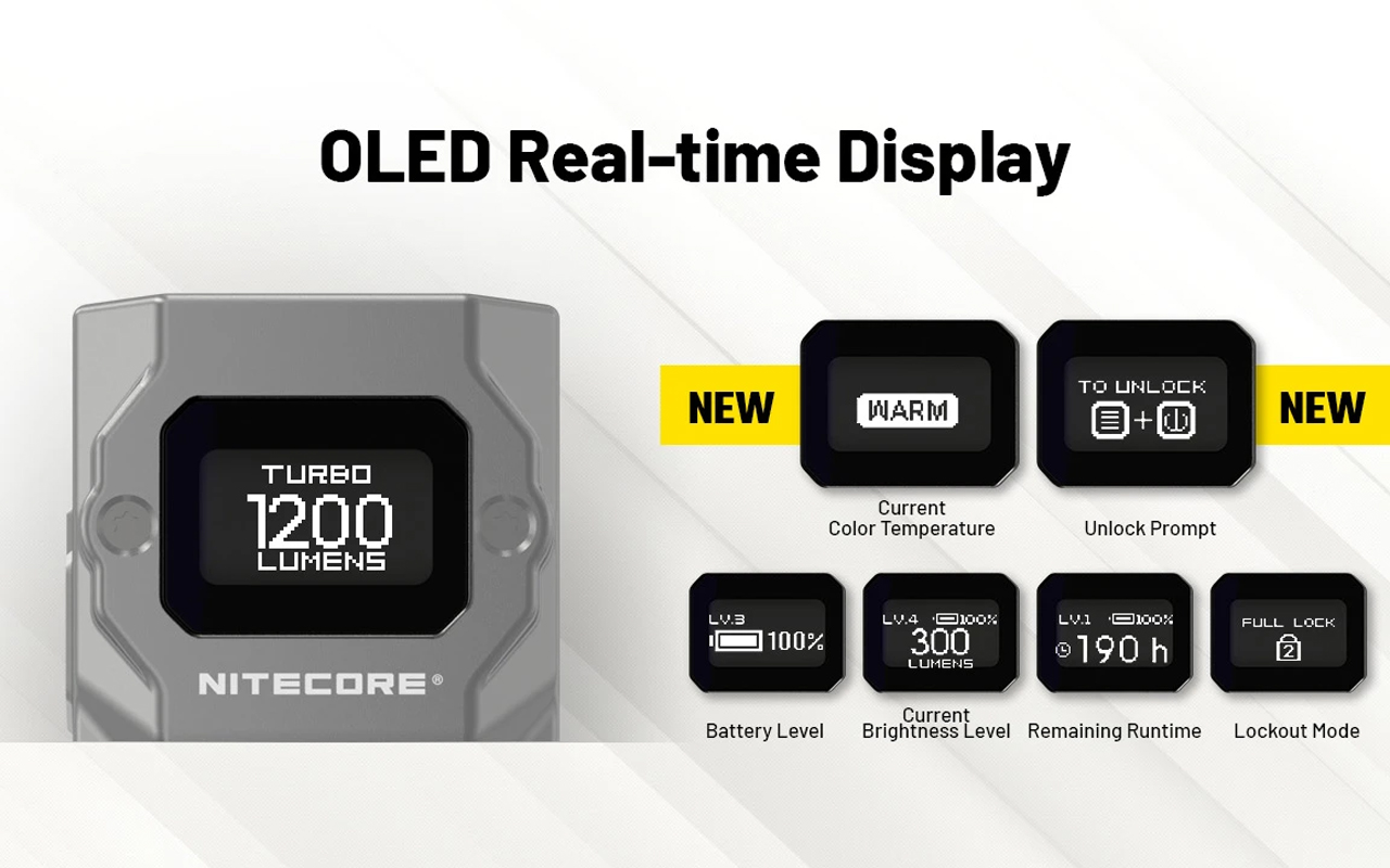 Compacte et légère (58 g), elle intègre un écran OLED multifonction affichant en temps réel la puissance, l’autonomie restante et le niveau de batterie. La TUP 2 conserve la praticité d’une lampe de poche miniature tout en offrant les performances d’un modèle professionnel.