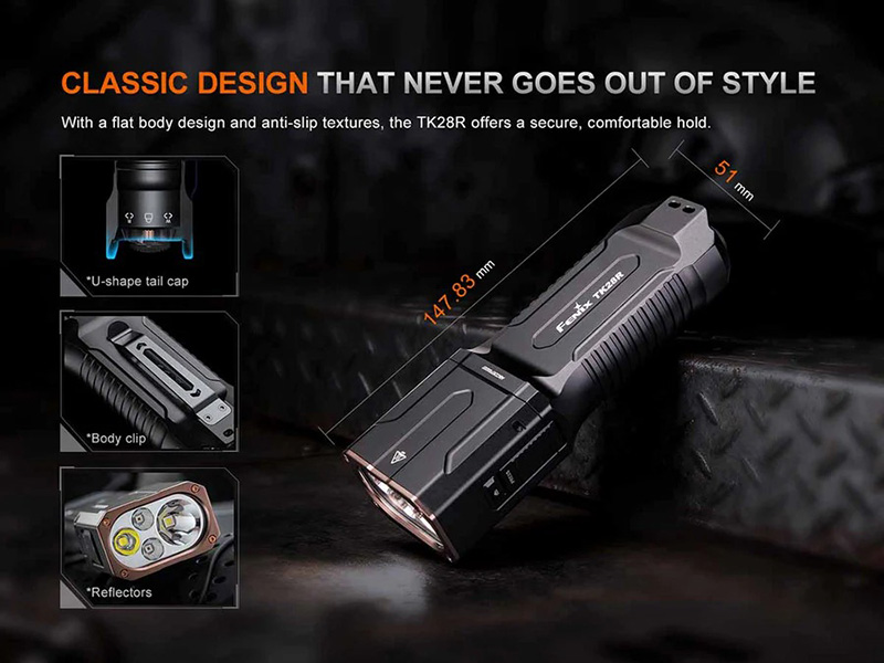 Rechargeable en moins de 1,5 heure via port USB Type-C, la TK28R est l'outil d'éclairage idéal pour les forces de l'ordre, les unités tactiques, les équipes de secours et les passionnés d'activités de plein air exigeant un équipement puissant, fiable et polyvalent.