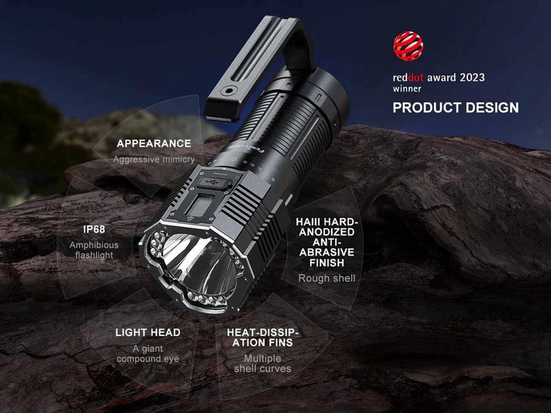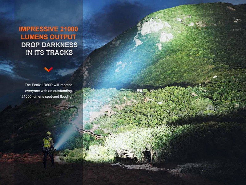La lampe torche Fenix LR60R est une lampe de poche conçue pour la performance avec une puissance de 21000 Lumens pour une portée de 1085 mètres.