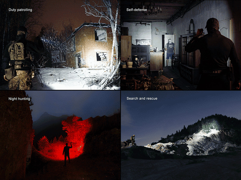 Circuit de mémoire intelligent : La lampe mémorise automatiquement la dernière puissance sélectionnée, à l'exception des modes Strobe et Flash rouge. Lors du rallumage, le mode précédemment utilisé sera rappelé.