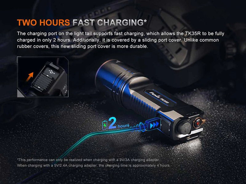 Rechargeable en seulement 2 heures avec adaptateur 9V/3A via port USB Type-C, la TK35R RED est l'outil d'éclairage idéal pour les forces de l'ordre, militaires, équipes de secours et professionnels de la sécurité exigeant un équipement fiable, puissant et polyvalent.