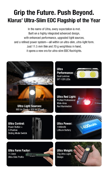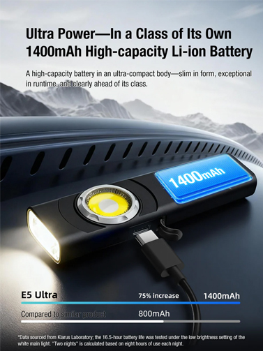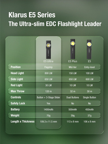 Lampe de poche de travail Klarus E5 Ultra - 800 Lumens - Ultra mince - Triple Éclairage