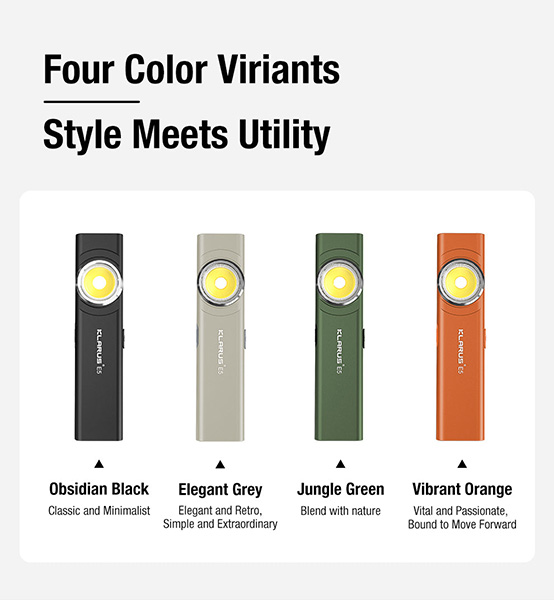 La lampe de travail Klarus E5 Plus est un concentré de technologie ultra-compact offrant 650 lumens et une portée de 32 mètres. Développée après avoir vendu plus de 200 000 unités E5 depuis septembre 2023, cette amélioration guidée par les clients offre des performances renforcées pour tous vos besoins EDC et professionnels.