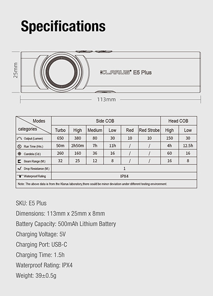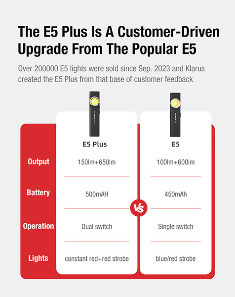 - 1 Lampe torche Klarus E5 Plus (Batterie incluse)