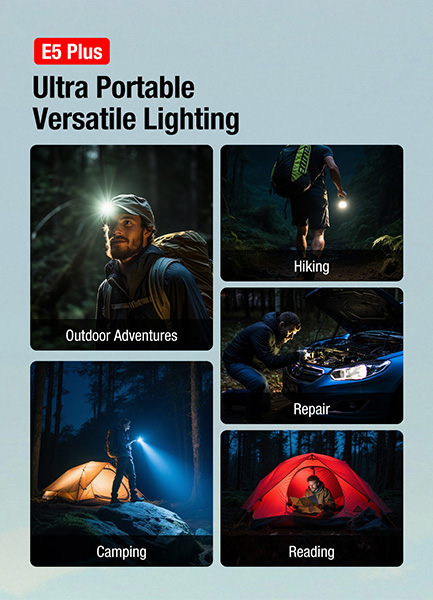 Rechargeable en seulement 1,5 heure via USB-C, la E5 Plus est l'outil d'éclairage idéal pour les professionnels et les amateurs d'activités outdoor exigeant un équipement fiable, performant et polyvalent.