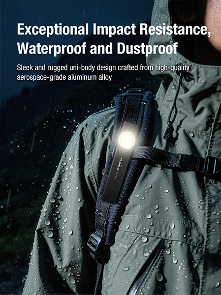 Conçue pour les activités outdoor et professionnelles, la E5 Plus est fabriquée en alliage d'aluminium de grade aéronautique 6063 et bénéficie d'une protection IPX4 contre les projections d'eau ainsi qu'une résistance aux chutes d'1 mètre. Son design ultra-compact assure une portabilité exceptionnelle avec seulement 8mm d'épaisseur.