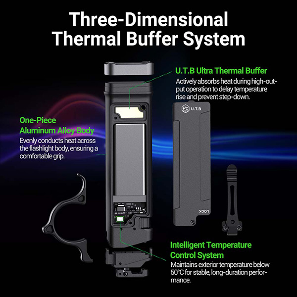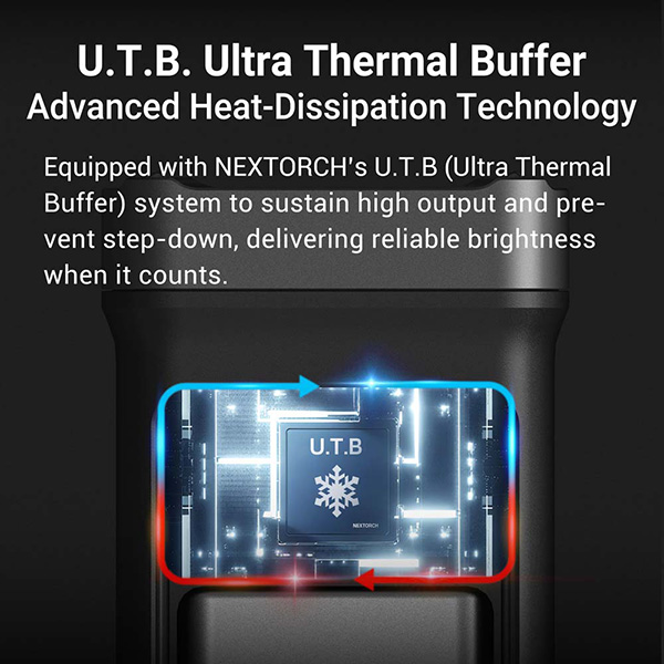 La lampe tactique Nextorch TA70 est une lampe EDC ultra-compacte offrant 3500 lumens et une portée de 220 mètres. Équipée de la technologie exclusive U.T.B Ultra Thermal Buffer de Nextorch, elle maintient une luminosité maximale tout en conservant une température de prise en main confortable lors d'une utilisation prolongée à forte intensité, ce qui la rend idéale pour les opérations tactiques et l'intervention d'urgence.