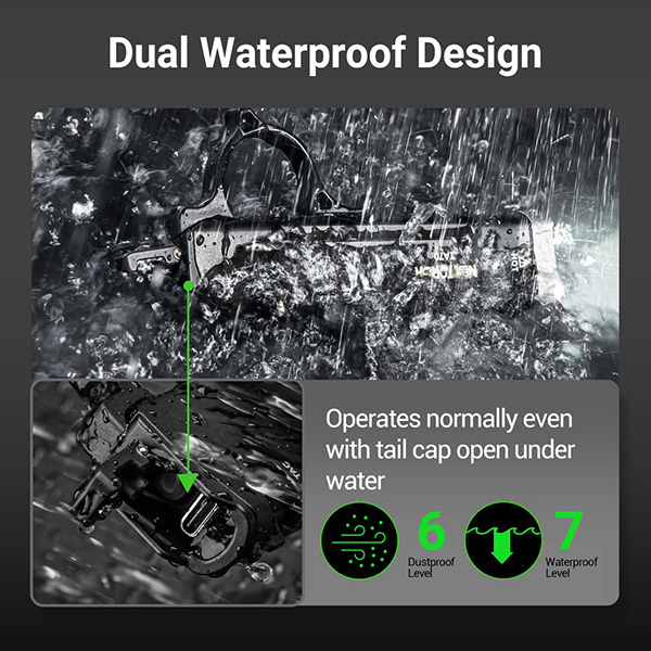 - Mode Tactique : activation momentanée 3500 lumens et accès instantané au stroboscope pour les opérations tactiques