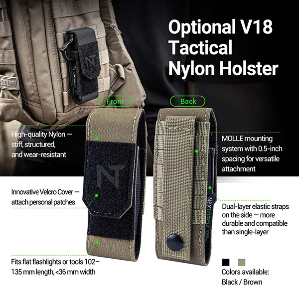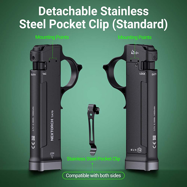Rechargeable via port USB-C caché, la Nextorch TA70 est l'outil d'éclairage idéal pour les forces de l'ordre, militaires, agents de sécurité, pompiers et les passionnés d'outdoor exigeant un équipement tactique, fiable et performant.