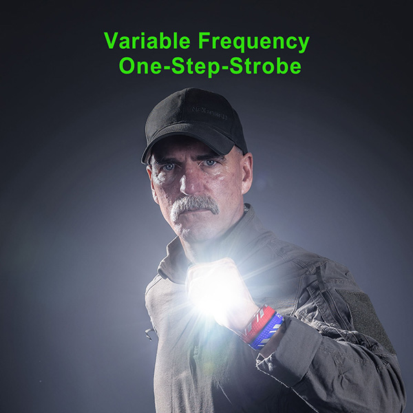 Pour activer le mode stroboscope il suffit de rester appuyer sur le bouton mode plus d'une seconde, lampe éteinte ou lampe allumée.