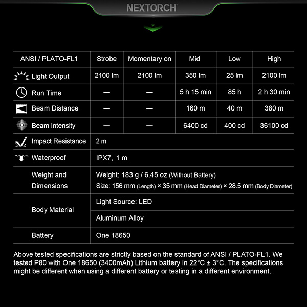 Toutes ces caractéristiques font de la lampe Nextorch P80 un choix idéal pour ceux qui désirent une excellente lampe de poche EDC rechargeable polyvalente et compacte.
