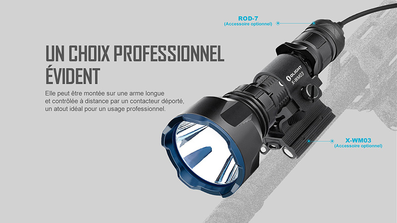 Lampe Torche Tactique Olight Warrior X Turbo 1100 Lumens - Portée 1000 Mètres - Batterie 21700 Rechargeable